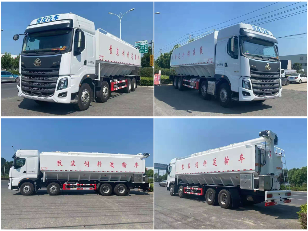 散裝飼料車(chē),又名散裝飼料運(yùn)輸車(chē),飼料運(yùn)輸車(chē)。結(jié)構(gòu)簡(jiǎn)單、性能可靠、輸送量大、操控方便、機(jī)動(dòng)性強(qiáng)、對(duì)物料無(wú)污染等特點(diǎn),廣泛應(yīng)用于各大中小型養(yǎng)殖企業(yè)的飼料的運(yùn)輸。主要用于從飼料廠向畜牧場(chǎng)、養(yǎng)禽場(chǎng)及飼料加工用戶(hù)運(yùn)輸散裝飼料成品或飼料生產(chǎn)原糧,同時(shí)它也可用來(lái)運(yùn)輸某些無(wú)腐蝕性粉粒狀原料,如制藥廠粉料和糧庫(kù)周轉(zhuǎn)。
